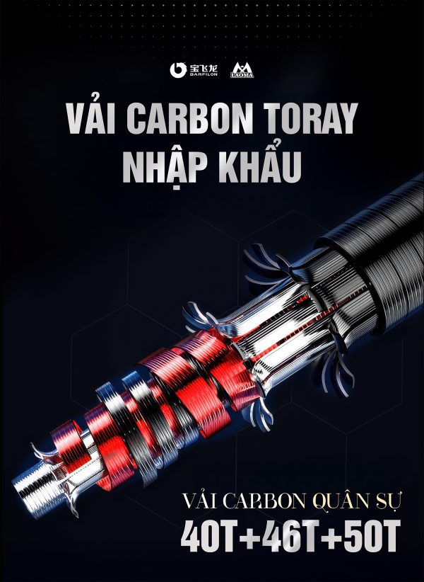 - Thân cần chế tác từ vải carbon Toray nhập khẩu: đảm bảo độ cứng vững, độ nảy chuẩn và độ bền vượt trội.