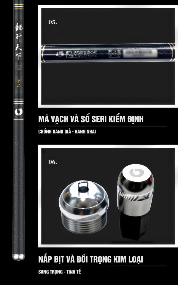 - Nắp bịt & đối trọng kim loại: tăng vẻ sang trọng, cân bằng hoàn hảo cho toàn thân cần.